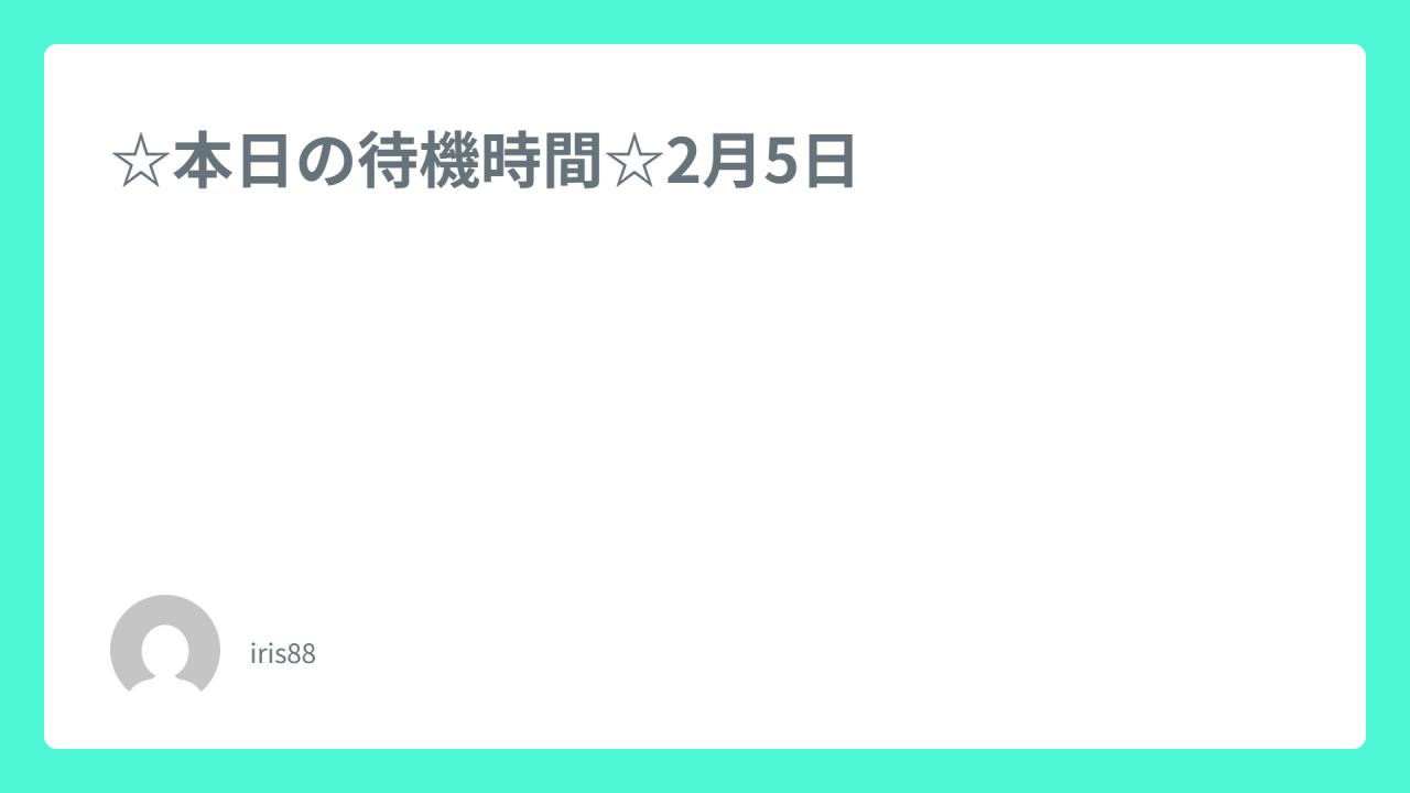 ☆本日の待機時間☆2月5日